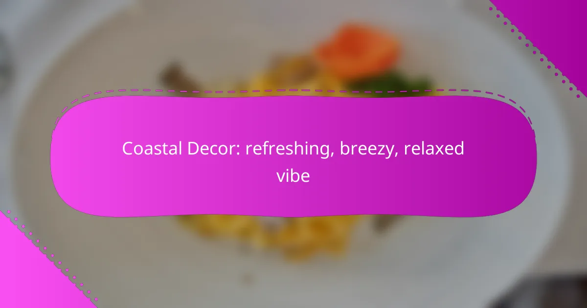 Coastal decor embodies a refreshing, breezy, and relaxed vibe, primarily characterized by its color palette, natural materials, and thematic artwork. Key elements include light colors, organic textures, and marine-inspired designs that evoke the tranquility of seaside living.