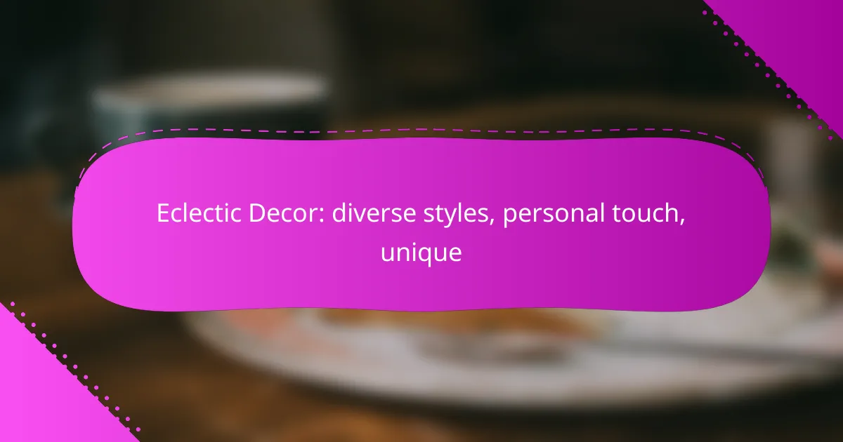 Eclectic decor offers a blend of diverse styles that reflect personal taste, creating a unique atmosphere in any space. This approach allows individuals to combine various elements, resulting in a distinctive and inviting environment.