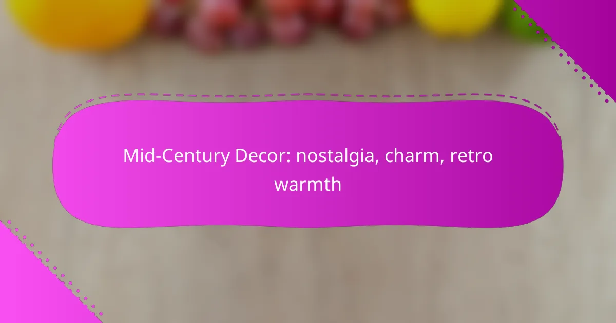 Mid-Century Decor is defined by its nostalgic charm and retro warmth, showcasing a blend of functionality and aesthetic appeal. Key characteristics include sleek lines, organic forms, and a focus on natural materials, all contributing to a timeless style that remains popular today.