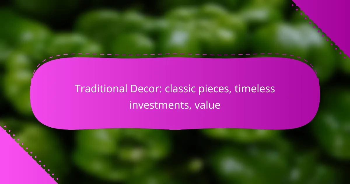 The best traditional decor pieces for classic homes include items that embody timeless elegance and craftsmanship. These pieces not only enhance the aesthetic appeal but also serve as valuable investments that can appreciate over time.