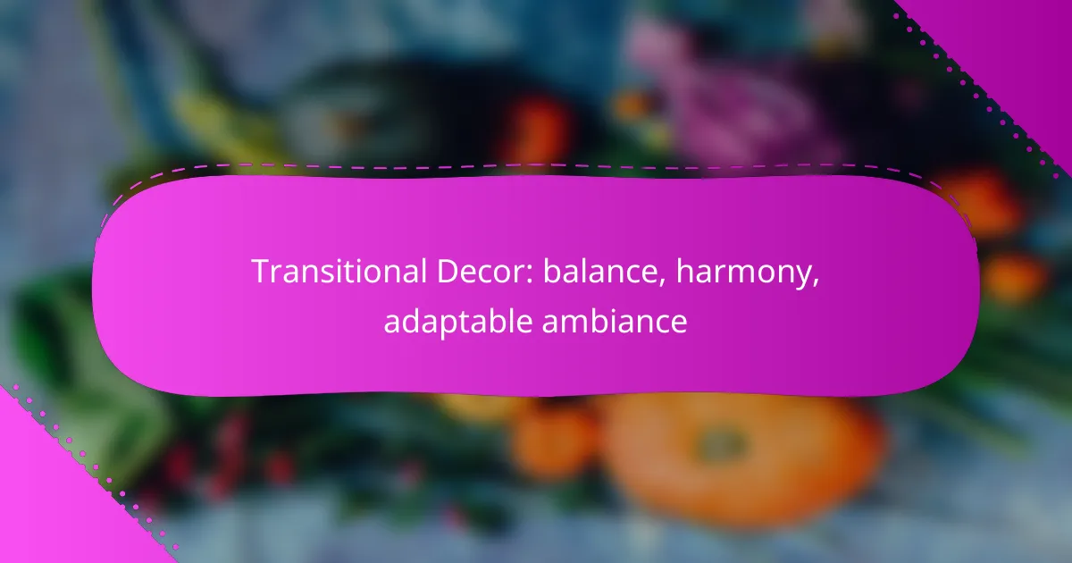 The best materials for transitional decor blend traditional and contemporary styles, creating a balanced and harmonious ambiance. Key materials include wood, metal, and soft textiles, which together enhance adaptability and comfort in various spaces.