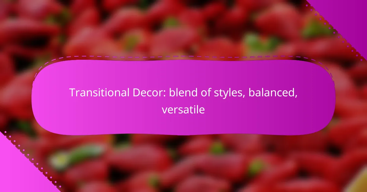 Transitional decor is a harmonious blend of traditional and contemporary styles, creating a balanced and versatile aesthetic. By thoughtfully combining elements such as furniture, textiles, and lighting, you can achieve an inviting space that reflects both classic elegance and modern simplicity.